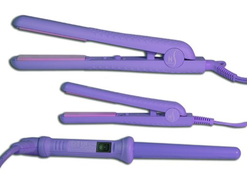 Today Save more for Herstyler Complete Colorful Kit (Hair Straightener, Mini Flat Iron, Grande Baby Curl), Purple